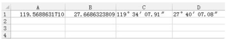 可以得到轉(zhuǎn)換后的經(jīng)度度分秒數(shù)值,緯度轉(zhuǎn)換方法與此一樣。